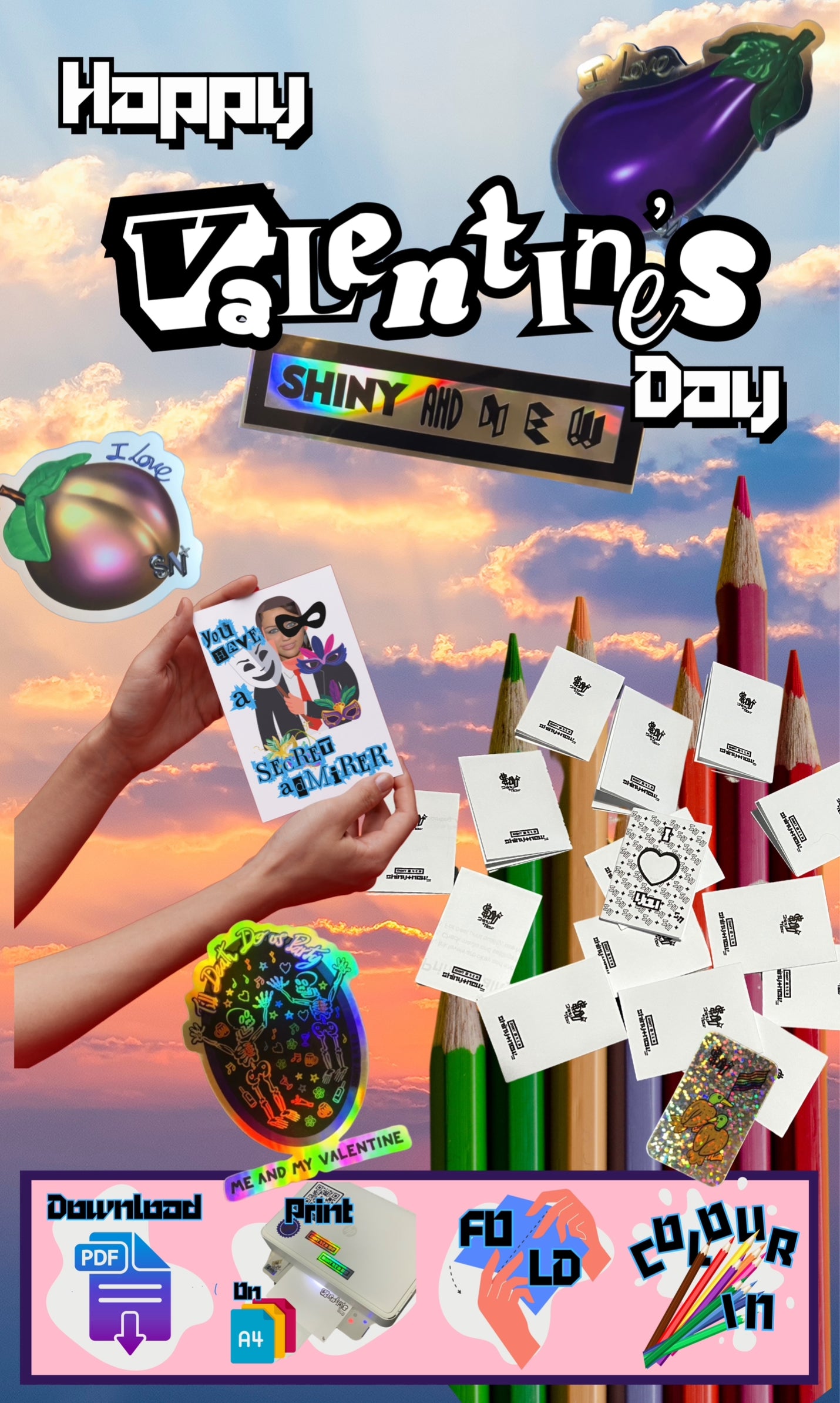 Starting with a very limited batch of 40 professionally made holographic stickers and foil prints made by me. I do hope to expand my collections as soon as I can invest in producing more designs.